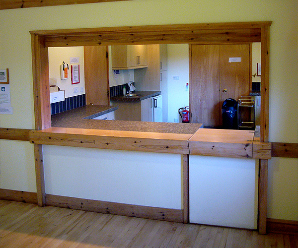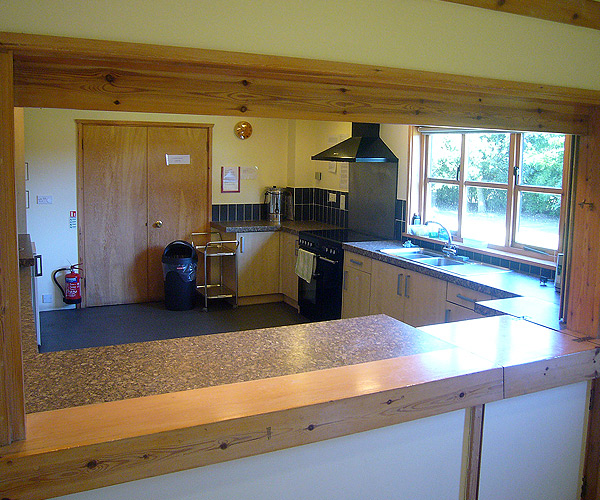 The kitchen is 4m x 3m. This is fully equipped with fridge, dishwasher and a Rangemaster cooker. There is a large selection of cutlery, crockery and tea cups which are free to use for the hirer. A double sink for clearing up. The kitchen has a large servery area that opens out on the main hall.